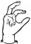На ћирилици написано РАСТКО БИЗУМИЋ састоји се из 13 слова [?]. Исписано ћириличном једноручном азбуком за глувонеме: